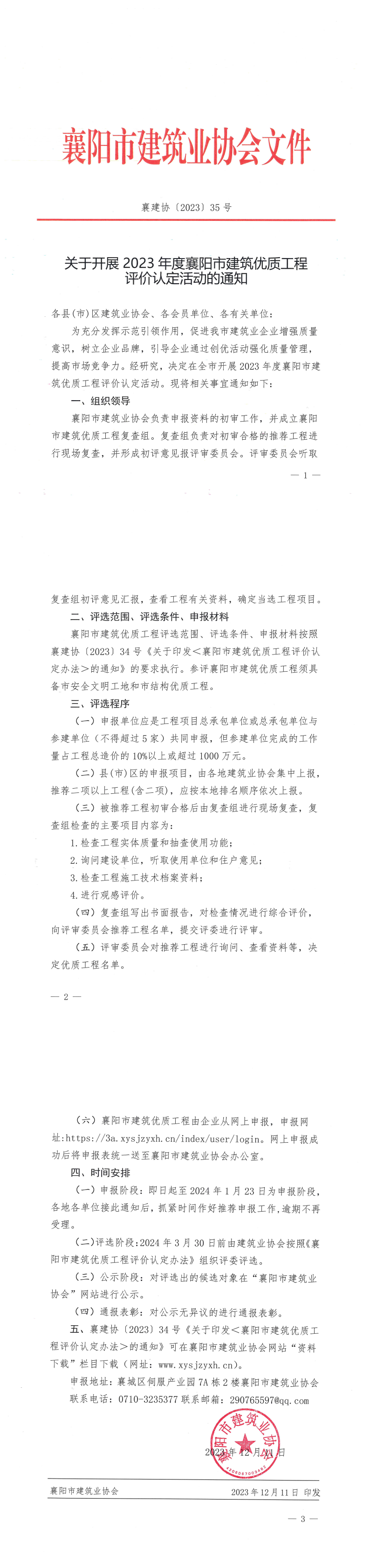 五、襄建協〔2023〕34號《關于印發<襄陽市建筑優質工程評價認定辦法>的通知》可在襄陽市建筑業協會網站“資料下載”欄目下載(網址:m.616263.com.cn)。