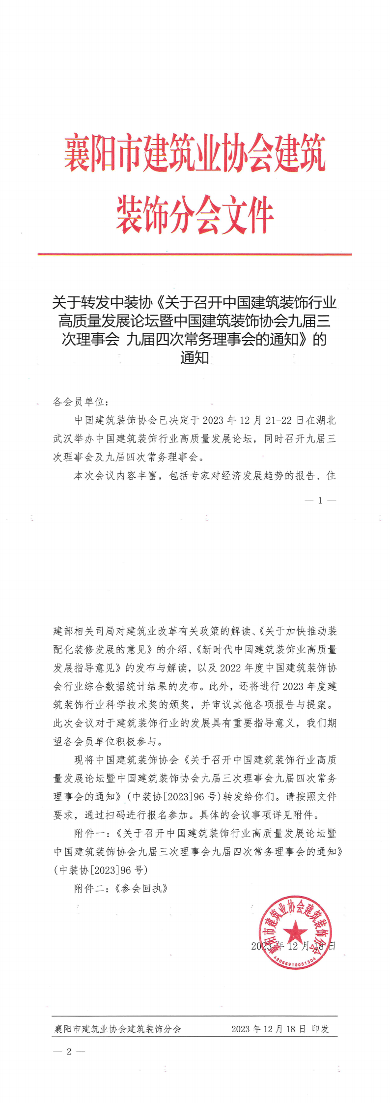 附件一:《關(guān)于召開(kāi)中國(guó)建筑裝飾行業(yè)高質(zhì)量發(fā)展論壇暨 中國(guó)建筑裝飾協(xié)會(huì)九屆三次理事會(huì)九屆四次常務(wù)理事會(huì)的通知》 (中裝協(xié)[2023]96號(hào))