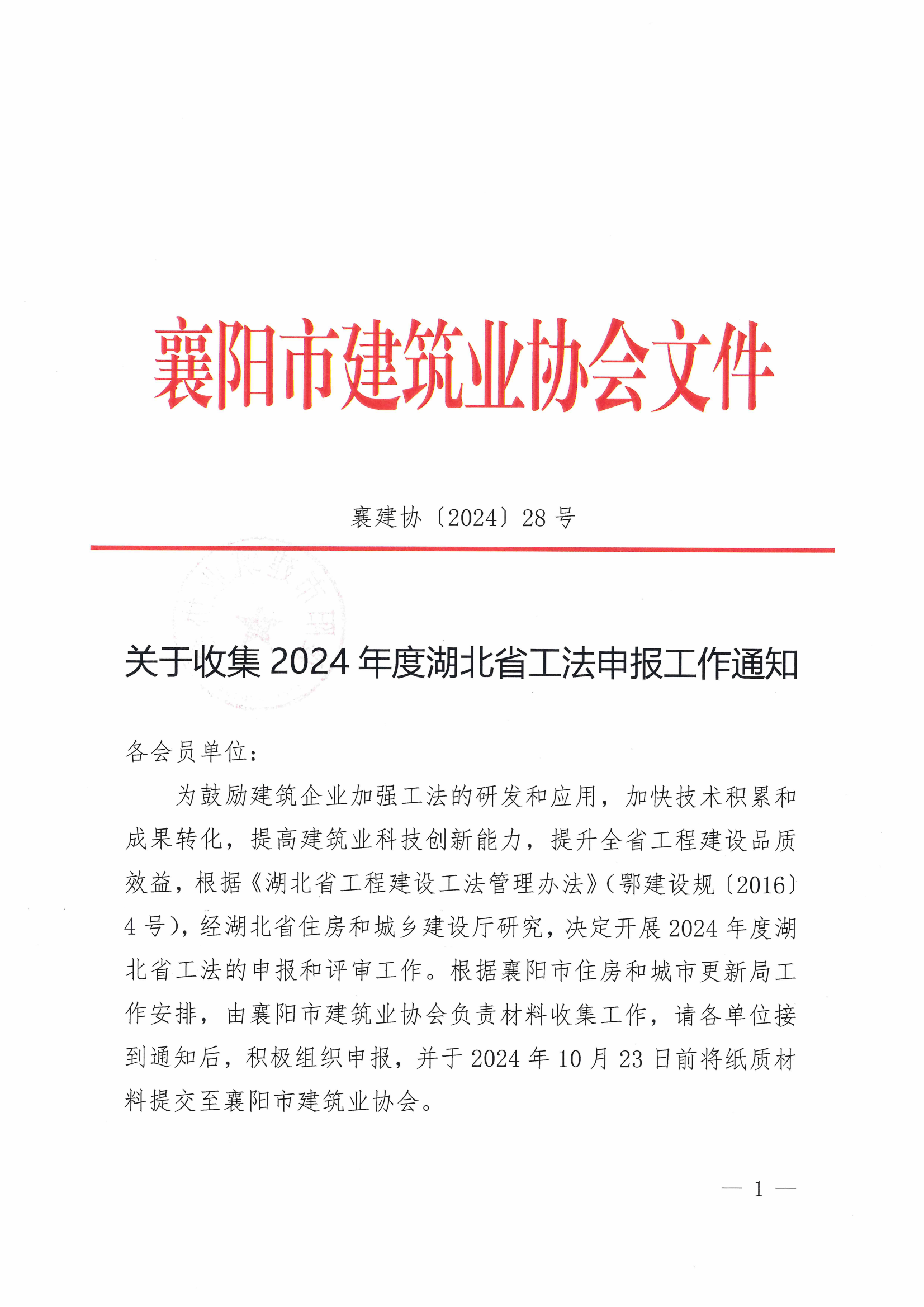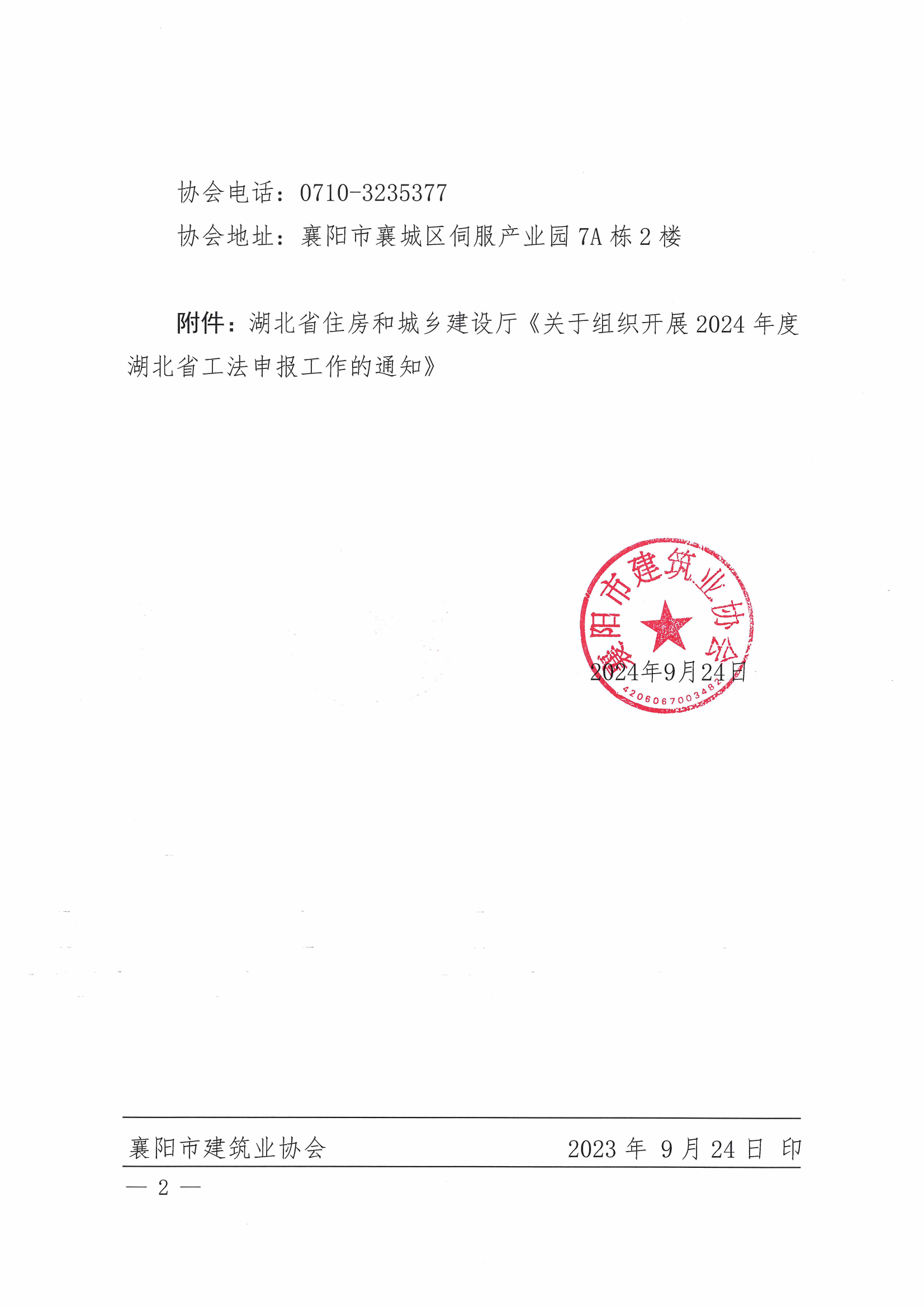附件:湖北省住房和城鄉建設廳《關于組織開展2024年度湖北省工法申報工作的通知》.pdf