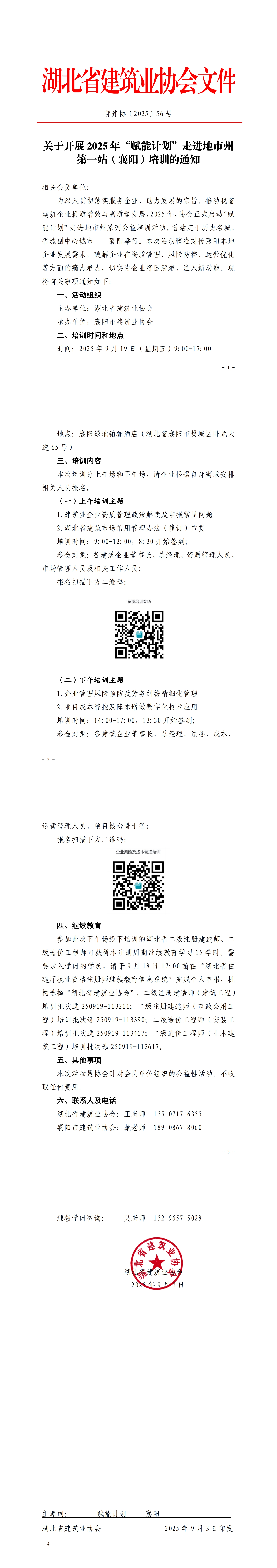 關(guān)于轉(zhuǎn)發(fā)鄂建協(xié)〔2025〕56號文《關(guān)于開展2025年“賦能計劃”走進地市州第一站(襄陽)培訓(xùn)的通知》的通知