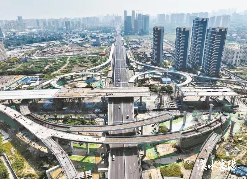 而臥龍大道高架橋最重要的節點——與襄江大道高架橋的互通處,8條匝道正在進行混凝土現澆箱梁和鋼箱梁架設施工,總工程量已超過七成,施工單位計劃在12月底之前開始對橋面展開瀝青攤鋪工作。