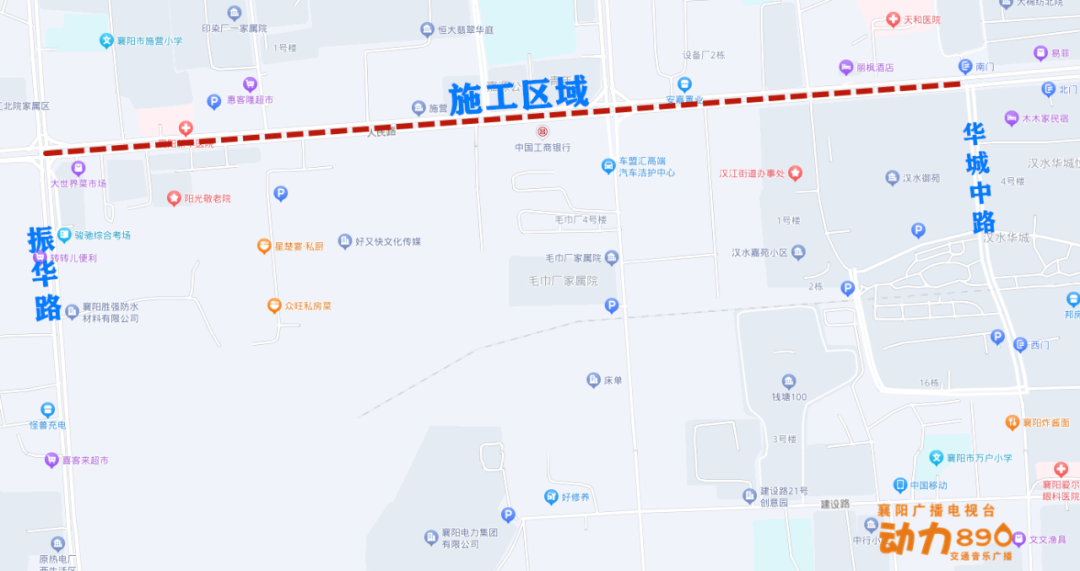二、2023年12月10日至2024年4月8日占用人民路(振華路-華城中路)北側(cè)最外側(cè)一股機動車道及非機動車道分段封閉打圍施工,非機動車經(jīng)由人行道通行。