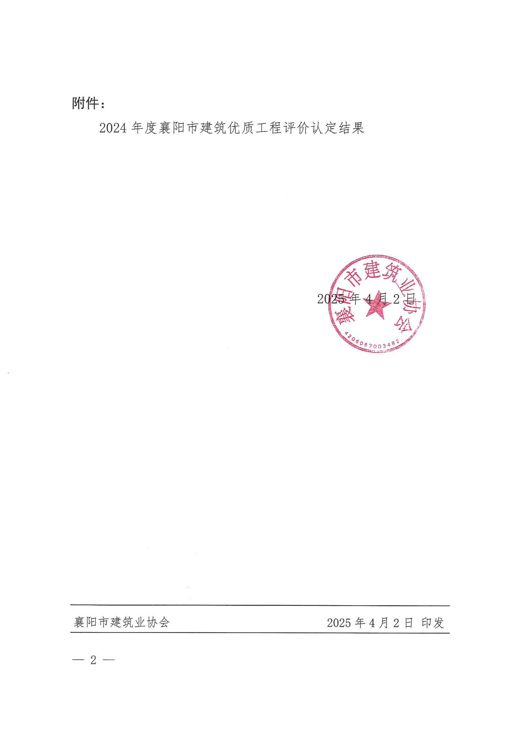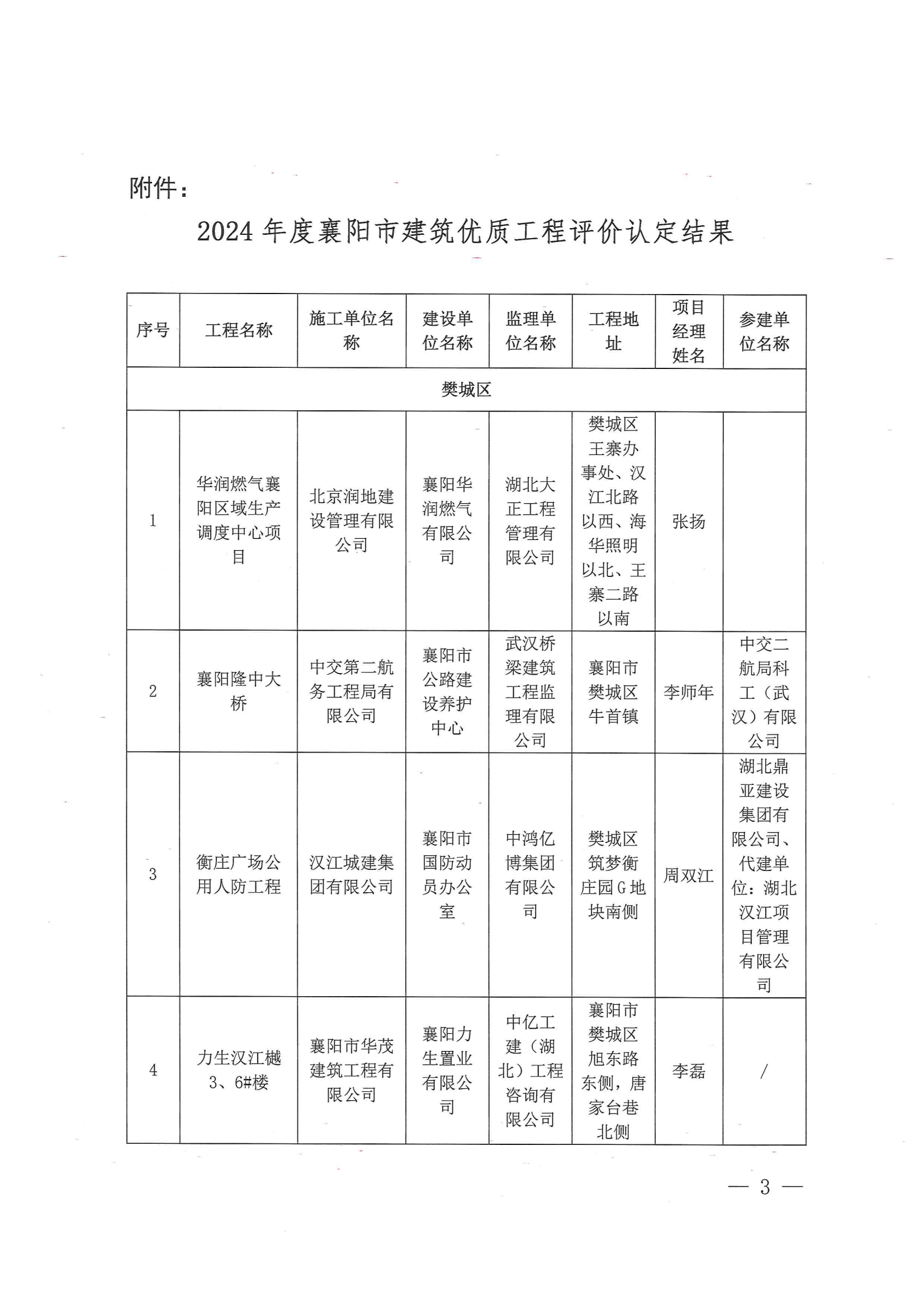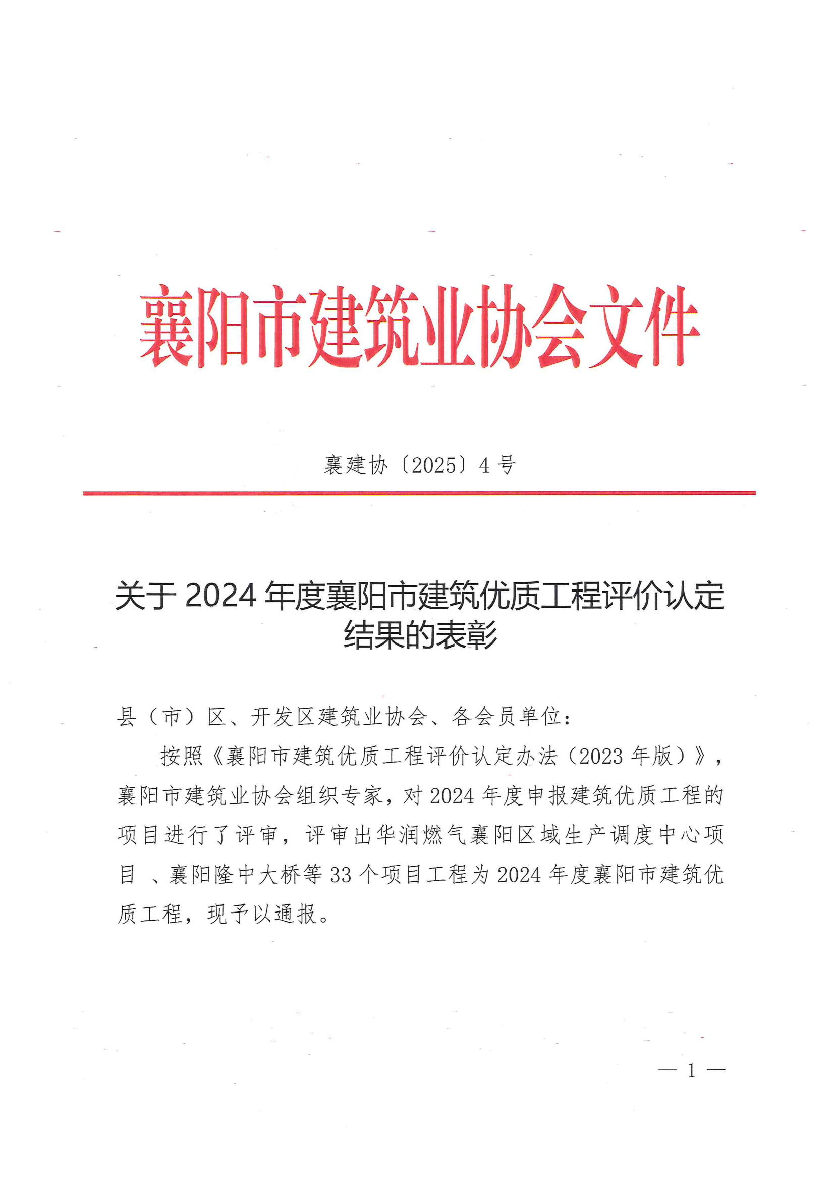 關(guān)于2024年度襄陽市建筑優(yōu)質(zhì)工程評價認定結(jié)果的表彰