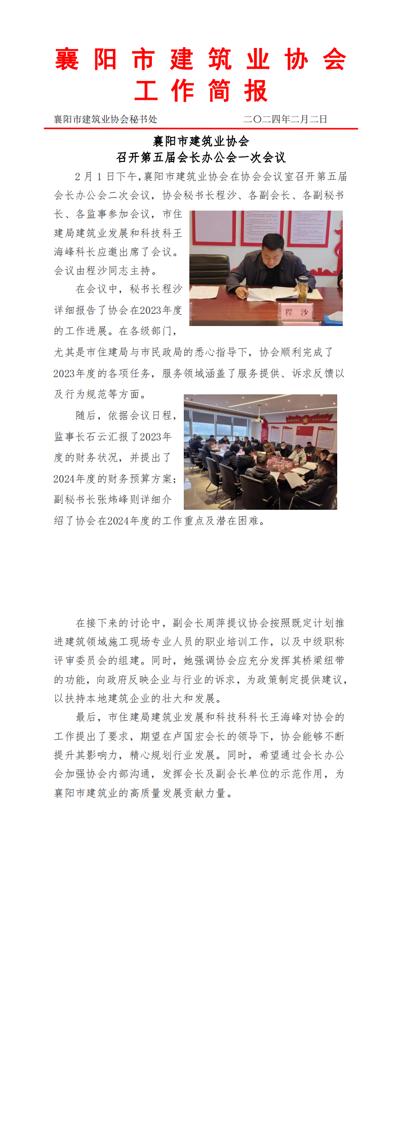 襄陽市建筑業協會 召開第五屆會長辦公會二次會議