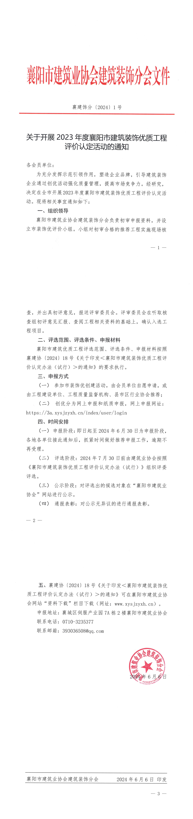 五、襄建協(xié)〔2024〕18號(hào)《關(guān)于印發(fā)<襄陽市建筑裝飾優(yōu)質(zhì)工程評(píng)價(jià)認(rèn)定辦法(試行)>的通知》可在襄陽市建筑業(yè)協(xié)會(huì)網(wǎng)站“資料下載”欄目下載(網(wǎng)址:m.616263.com.cn)。